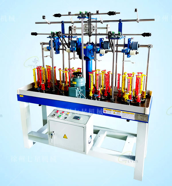 用途:織帶(鞋帶、服飾帶、松緊帶、波浪帶、滾邊帶、肩條帶等),測(cè)量繩、手提繩、拖車?yán)K、工具用繩,高空作業(yè)繩等各種繩帶的編織機(jī)。